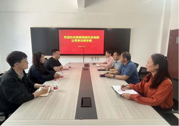 4月23日,杭州璨客网络科技有限公司一行莅临Beat365官网Beat365中文官方网站,就产教融合、校企合作相关合作事宜展开深入交流。Beat365中文官方网站院长孙勇、党总支书记苏云峰、副院长王珂、副书记王倩参加本次座谈会。