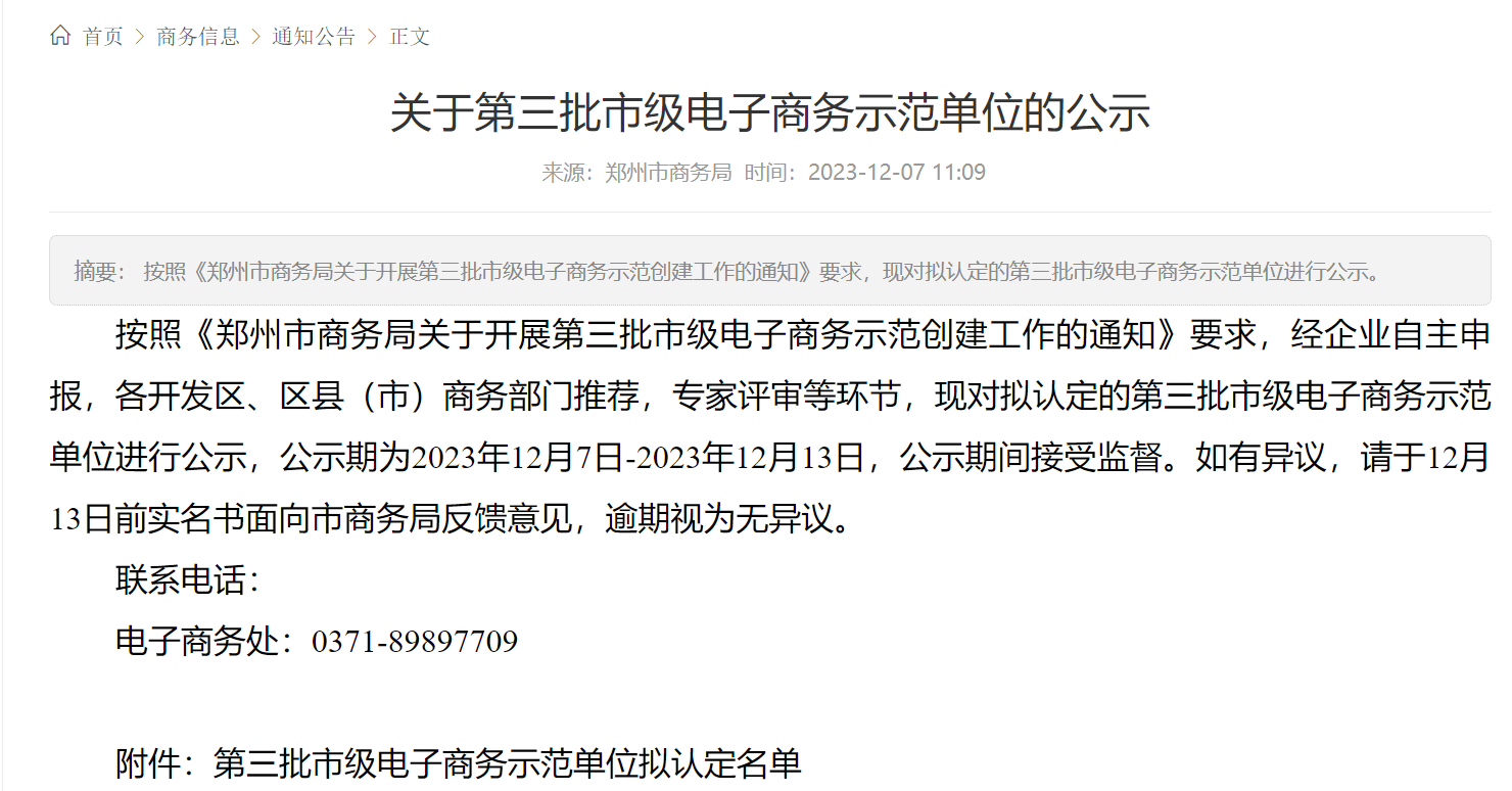按照《郑州市商务局关于开展第三批市级电子商务示范创建工作的通知》要求,经企业自主申报,各开发区、区县(市)商务部门推荐,专家评审等环节,Beat365中文官方网站近日被郑州市政府正式认定为第三批市级电子商务示范单位。这一荣誉的获得,不仅是对学院在电子商务领域教学和科研工作的肯定,也是对学校在推动地方经济发展中发挥重要作用的认可。