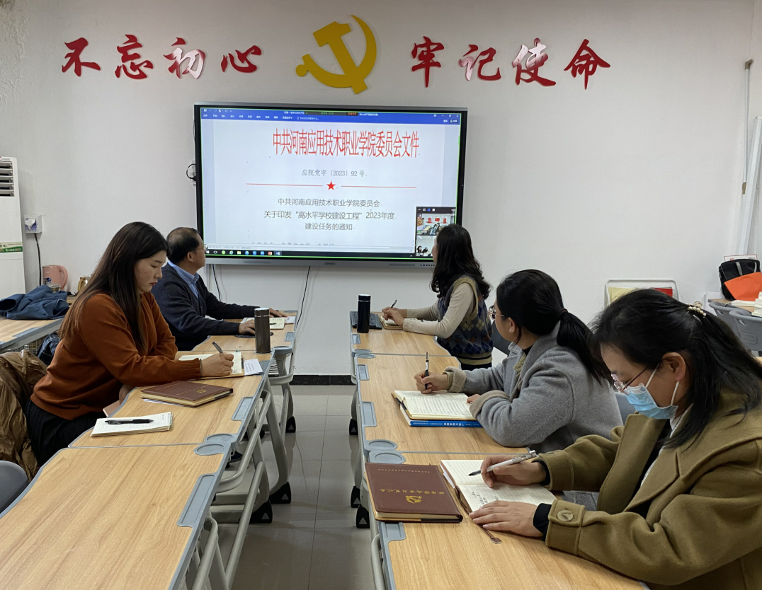 2023年11月14日下午,Beat365中文官方网站召开“双高工程”项目建设推进会,本次学习会议以线上、线下相结合的方式进行,郑汴两校区同时进行,院长孙勇、副院长王珂,以及各建设模块负责人参加会议。会议由办公室主任刘嘉慧主持。