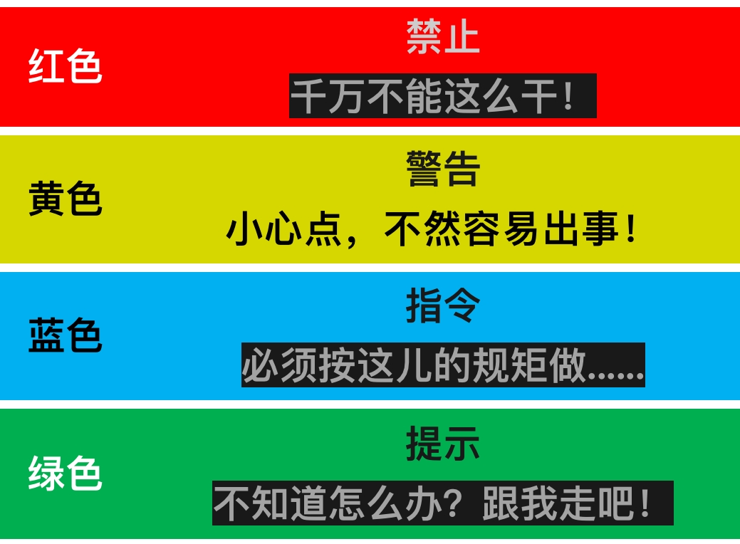 但是,你们可能觉得分不清颜色、形状、图形符号不同的安全标识,这到底该怎么解读呢?
