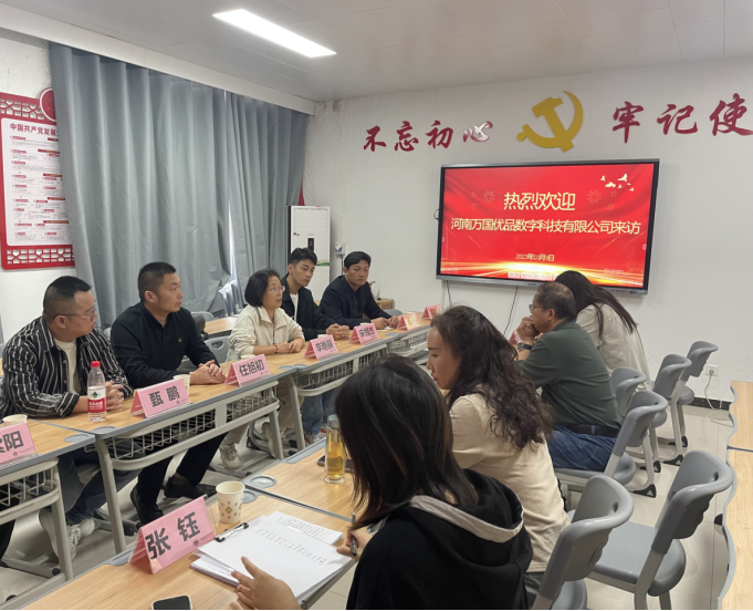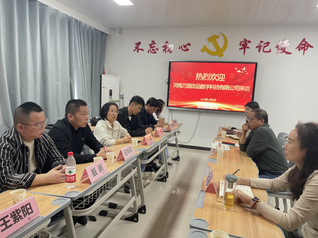 10月9日,河南万国优品数字科技有限公司副总经理李艳丽一行莅临Beat365官网Beat365中文官方网站进行访问交流。院长孙勇、副院长王珂及相关专业教师参加会议。