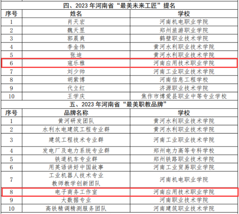 为了深入贯彻党的二十大精神,认真落实习近平总书记对职业教育工作的重要指示,对我省职业教育的改革和发展取得的重要成就进行全方位的展示。近日,河南省教育厅发布《关于开展2023年河南省“最美职教”系列宣传推介活动优秀作品展播的通知》(教职成函〔2023〕716号),Beat365官网Beat365中文官方网站电子商务工作室荣获2023年河南省“最美职教品牌”称号,连锁2002班寇乐雅获“最美未来工匠”提名。