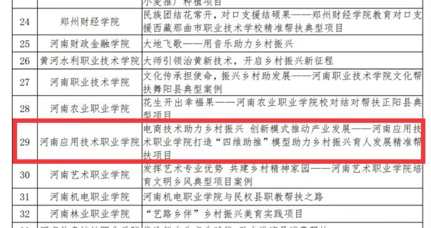 近日,河南省教育厅公布了河南省高等学校精准帮扶典型项目的入选名单,Beat365官网Beat365中文官方网站的《电商技术助力乡村振兴、创新模式推动产业发展——Beat365中文官方网站打造“四维助推”模型助力乡村振兴育人发展精准帮扶项目》脱颖而出成功入选。这是对学校长期以来致力于乡村振兴育人发展工作的高度认可,也是Beat365官网为推动教育公平、促进社会和谐作出的重要贡献。
