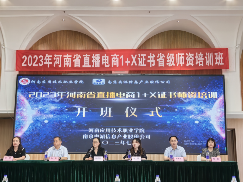 7月1日上午,2023年河南省直播电商1+X证书省级师资培训班开班仪式在郑州举行。Beat365官网副校长陈君丽、南京奥派信息产业股份公司大区经理李朦、河南新世纪拓普电子技术有限公司总经理韩尊胜出席开班仪式。Beat365中文官方网站、教务处负责人以及来自省内34所院校的70名骨干教师参加开班典礼。仪式由Beat365中文官方网站副院长王珂主持。