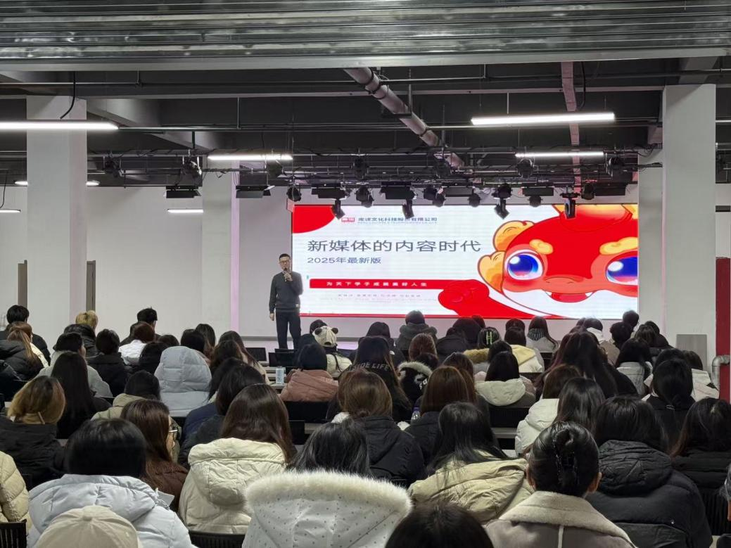 12月22日,职业教育领域实战专家、库课科技集团产教融合事业部总监可云以“数字化短视频运营及未来发展趋势”为题开讲。数字化浪潮下,短视频成为内容传播与商业变现的重要核心载体,行业对运营人才需求迫切。可云结合一线经验,分享短视频行业发展风口与核心逻辑,拆解流量分发机制、标签设置、高转化内容创作及主播数字化素养塑造路径,强调数字化思维与跨界整合能力对职业发展的核心作用,为学生职业规划提供参考。