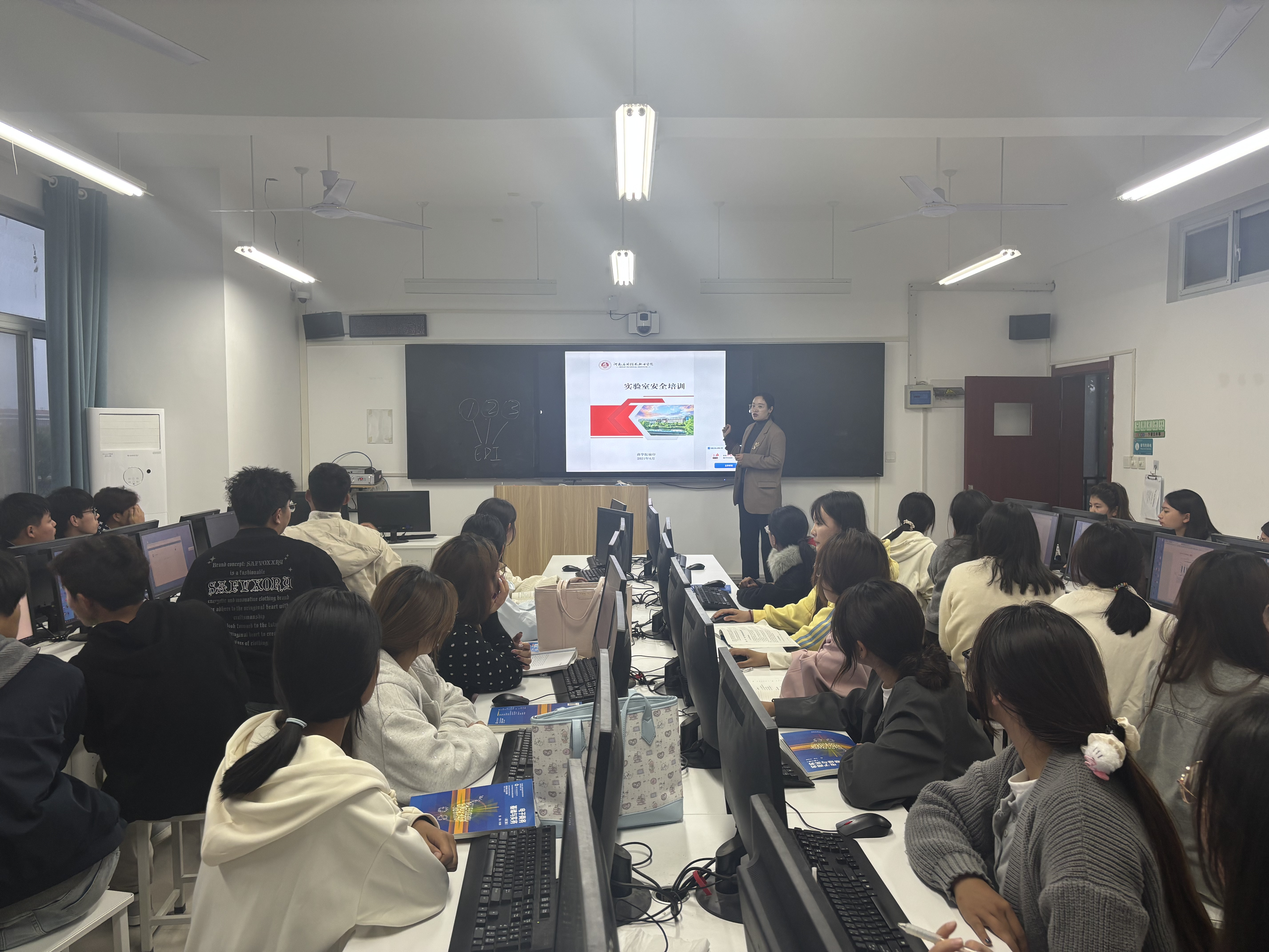 培训现场,授课教师结合Beat365中文官方网站实训教学特点与实训室实际情况,围绕三大核心内容展开讲解。一是教师们详细解读了实训室使用规章制度,明确了设备操作权限、环境卫生要求、应急处置流程等硬性规定,强调“安全第一、规范操作”的实训原则。二是针对不同专业实训室的设备,教师们演示了规范使用流程,从设备开机检查、参数调试到操作过程中的注意事项,再到使用后的关机整理、耗材归置,逐一进行细致指导。三是教师们结合过往实训案例,梳理了用电安全、设备故障等常见安全问题,重点讲解了避免措施与应急处理方法,提醒新生时刻保持警惕,杜绝违规操作。