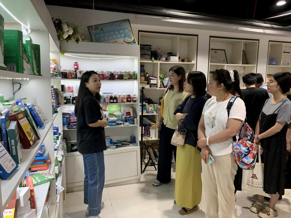 随后,大家来到了商品体验馆。在这里,琳琅满目的各类产品吸引了学员们的目光,工作人员详细介绍了公司产品从研发设计到生产销售的全流程。尤其在医疗保健类产品方面,公司依托河南大健康行业基地,主打中药膏贴产品,借助电商平台成功销往全球,并在美国、欧洲等地注册了自有品牌,这一创新模式让老师们深刻感受到传统产业与互联网结合所迸发的巨大能量。