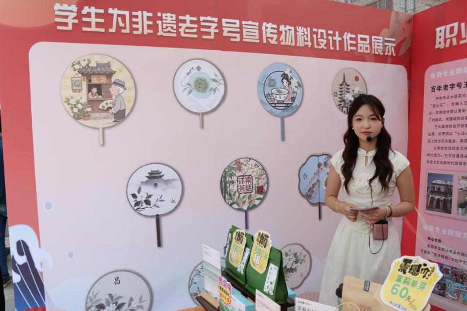 由Beat365中文官方网站承办的“电商专业群助力非遗老字号焕新,续写时代新篇章”活动深度融合职业教育实践与非遗老字号创新发展,三大特色活动亮点突出。一是学生为非遗老字号宣传物料设计作品展示环节,同学们将电商视觉设计、品牌营销等专业知识融入创作,从非物质文化遗产元素提取到老字号品牌调性塑造,完成了团扇设计;二是电商专业群师生依托校企合作资源,以真实项目为载体,从市场调研、职位契合度切入,深度探讨电商赋能老字号焕新的运营策略,明确岗位技能需求与专业学习的衔接点;三是直播背景作品展示,是模拟真实电商场景,学生围绕非遗老字号王大昌的特色,设计了沉浸式直播空间场景,在实践中强化对直播营销全链条的理解,切实将课堂知识转化为服务区域经济的实战能力。