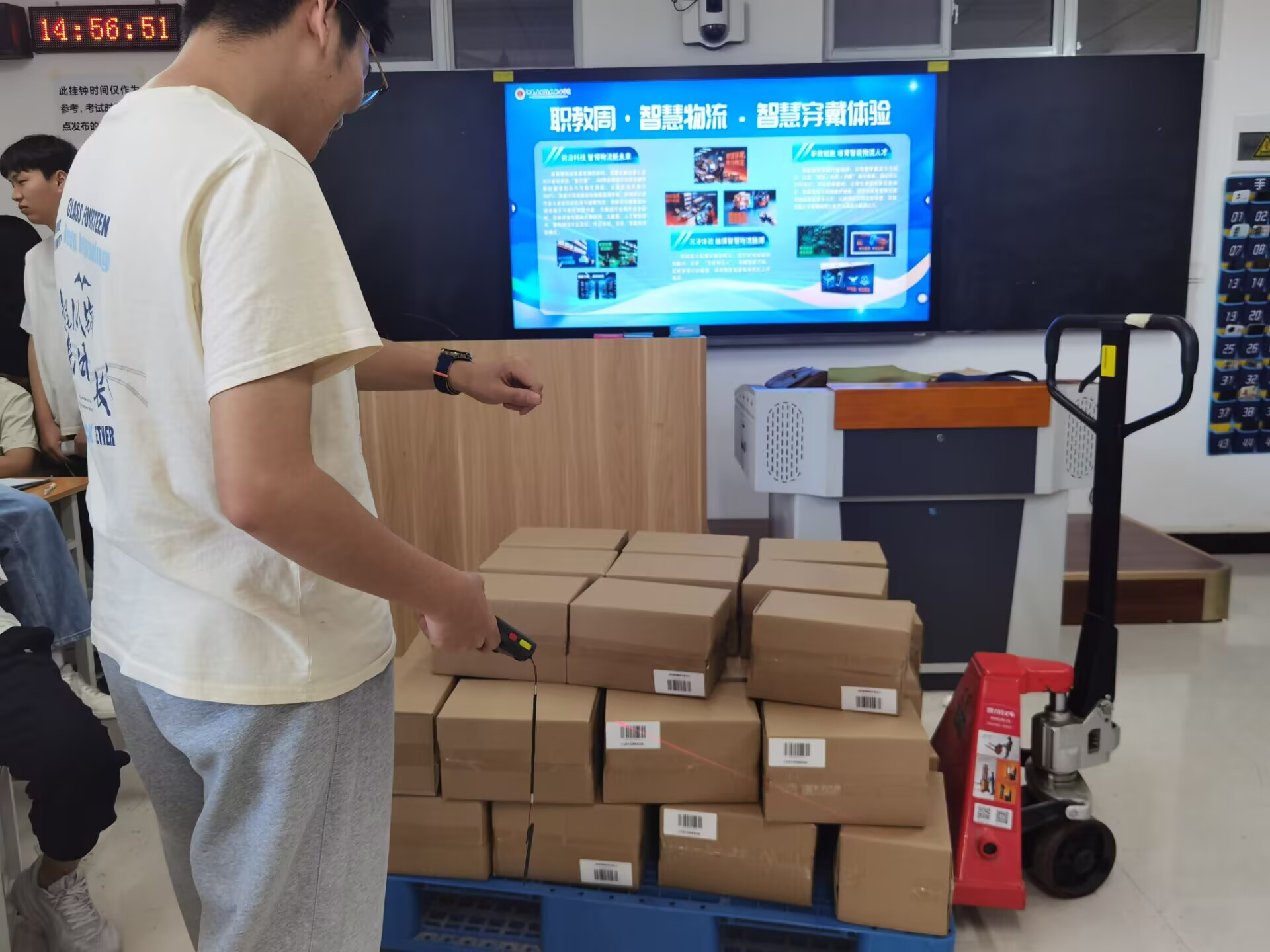 现场的指导老师也为大家详细讲解了智能穿戴设备在物流领域的重要意义。老师介绍说,智能穿戴的广泛应用是智慧物流蓬勃发展的重要标志。在实际物流作业中,这些设备能够实时收集数据、精准定位货物,极大地提升了物流作业的效率,让整个流程更加智能化、人性化。对于同学们而言,此次体验活动为他们未来进入行业前沿岗位奠定了坚实的实践基础。