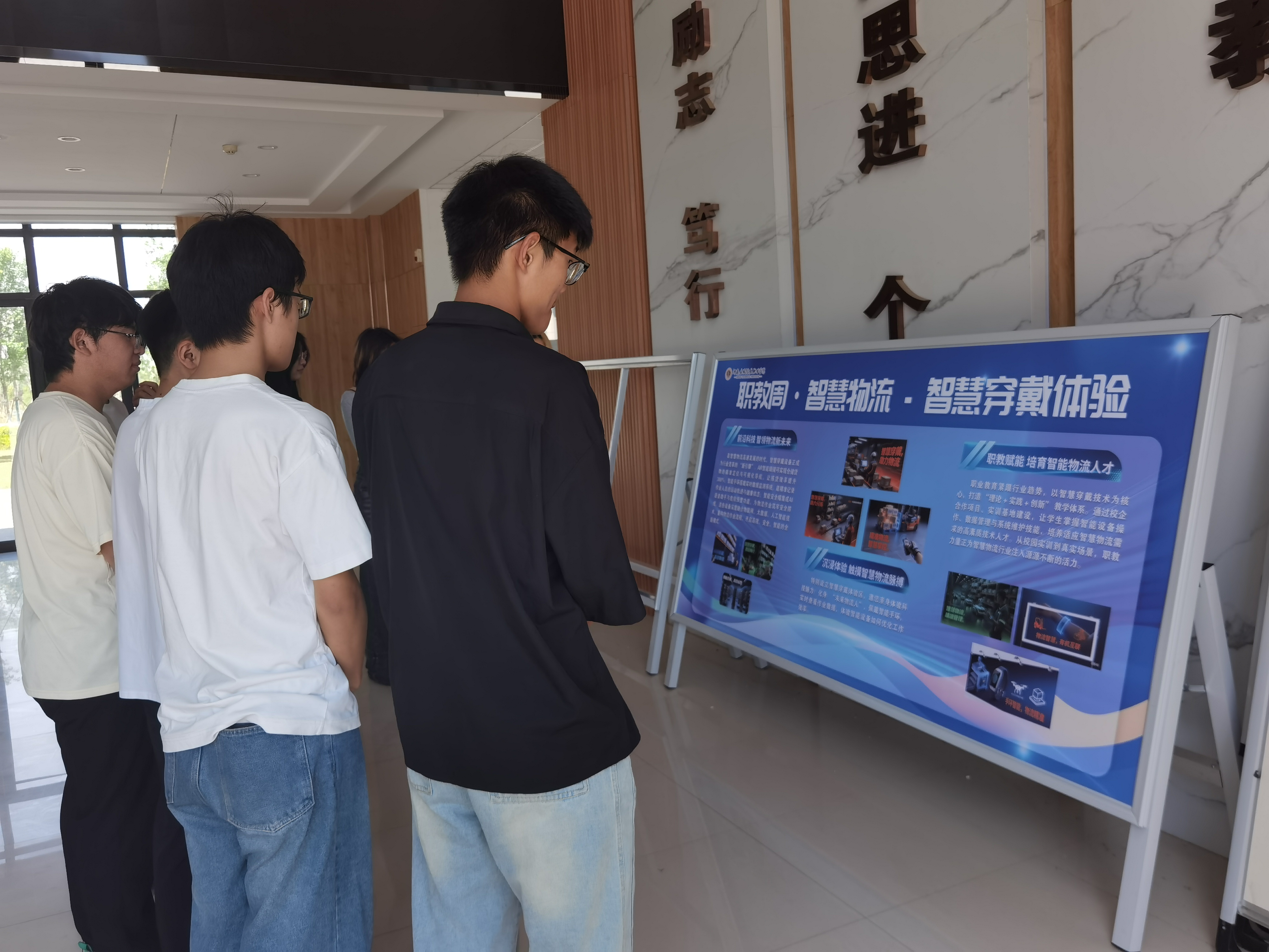 踏入活动现场,物流实训室化身为前沿科技的展示舞台,智慧穿戴和其他一系列设施设备有序陈列,等待着大家去探索。参与体验的同学们纷纷戴上这些设备,开启了奇妙的物流科技之旅。一位同学兴奋地分享道:“戴上这个智能手环,借助它的 AR 功能,仓库布局、货物位置一目了然,物流工作的流程好像变成了一场有趣的游戏,原本那些复杂抽象的概念瞬间变得触手可及,现在我对未来从事物流工作充满了期待!”