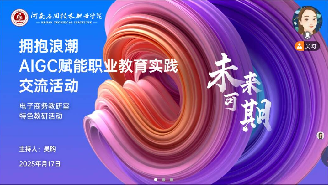 为深入贯彻落实国家教育数字化战略行动,全面提升教师队伍信息化素养,推动人工智能技术在教学中的深度融合,助力职业教育高质量发展。4月17日,Beat365中文官方网站电子商务教研室组织开展了以“拥抱浪潮,AIGC赋能职业教育实践交流活动”为主题的教研活动。教研室全体教师积极参与,围绕人工智能生成内容(AIGC)在课程教学中的应用展开了热烈而深入的交流与研讨。