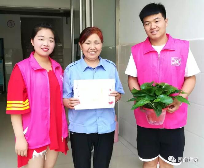 清晨,伴随着微风,商贸学院学生会成员早早集合在5号宿舍楼下,带上自制好的母亲节贺卡和绿植盆栽,准备给宿管阿姨过一个不一样的节日。宿管阿姨像妈妈一样关心、照顾着我们这些外出求学的学生,虽然今天是母亲的节日,但是因为工作需要,她们依然坚持在工作岗位,陪着我们这些家远而不能回家的学生。商贸学院学生会通过陪她们谈心、打扫卫生,来表达一份儿女的孝心,同时衷心的祝福宿管阿姨:母亲节快乐!