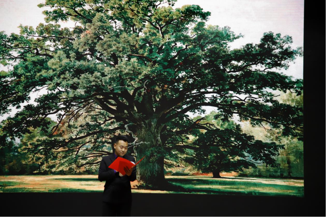陈国栋同学以“青春绽放,贺百年华诞”为主题的模拟主持为他赢得了全场的无数欢呼与掌声。在自选稿件朗读中他选择了舒婷的《致橡树》,“我如果爱你,绝不像攀援的凌霄花,借你的高枝炫耀自己......”