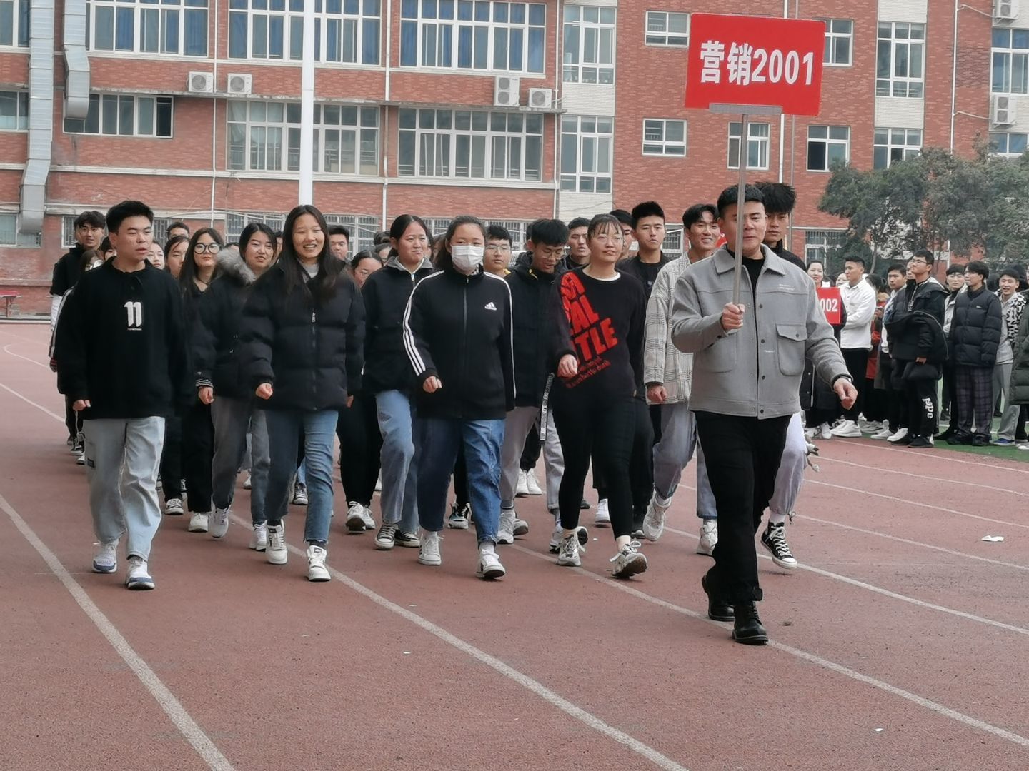 轻松的音乐,伴着动感的节拍,青春的朝气。在场的同学们按照比赛顺序喊着响亮的口号进入场地,动作整齐划一,充分展现了应院青年朝气蓬勃,青春动感的精神风貌。下面就随我一起感受下各班级的青春风采吧!各班级照片