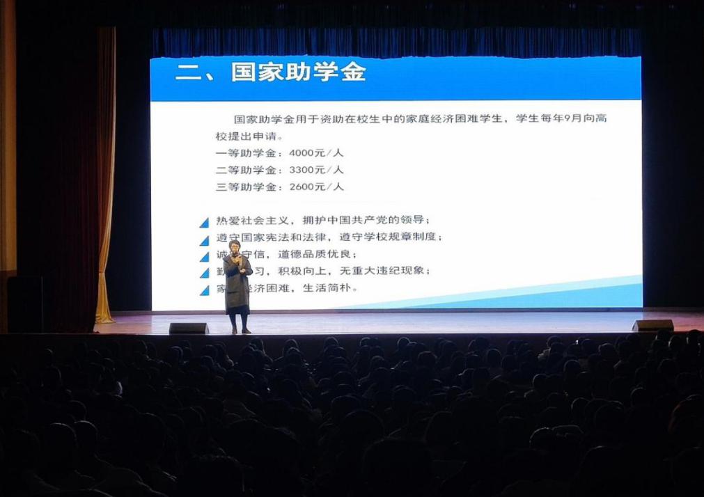 首先,刘超老师为大家详细讲解了国家资助体系,从国家助学贷款、国家助学金、国家励志奖学金、学校奖学金、勤工俭学岗位、大学生入伍优待政策、绿色通道,以及毕业生求职补贴等多个方面做了解读,最后鼓励同学们正确认识资助政策,将积极向上的态度、自强不息的精神带入学习以及以后的工作中,同时心怀感恩,将爱心传递下去,帮助更多有困难的人。