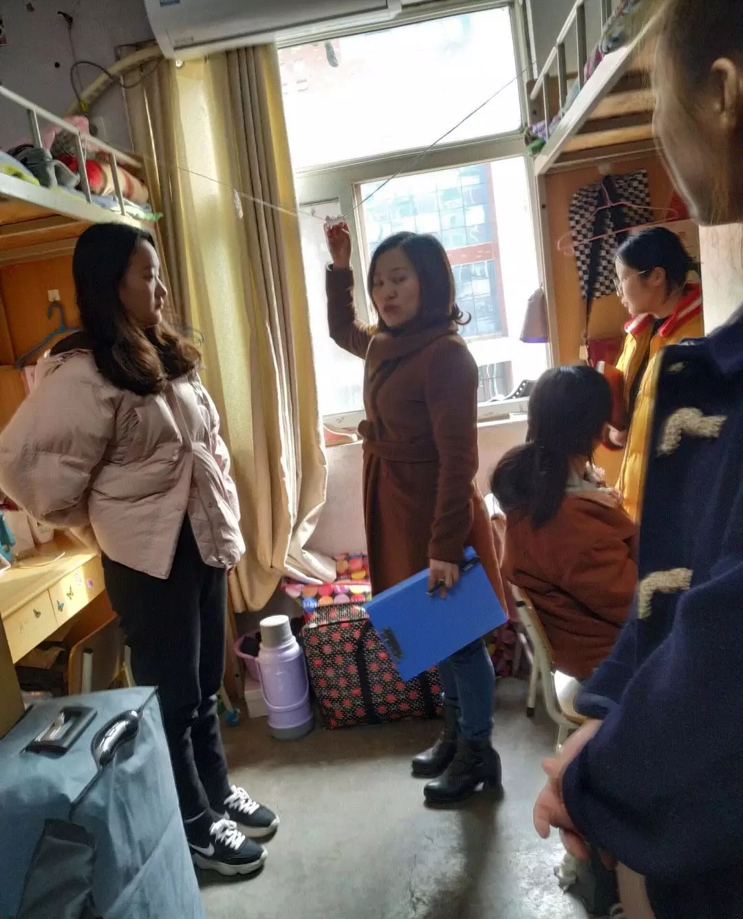 检查人员分批分组进行,重点针对宿舍卫生,私拉乱扯、大功率用电器进行了细致的检查,并对在检查中出现的问题进行了批评与指导。大多宿舍总体效果不错,干净整洁,床铺上物品及其他生活用品摆放整齐,并且没有大功率用电器,宿舍安全管理制度也很完善。但也有一些宿舍表现不是太好,一般都是高年级的宿舍。主要原因是物品多,摆放杂乱无序,针对上述问题,辅导员老师在检查过程中都一一要求整改,并对问题特别严重的宿舍做了记录,则领就地整改并发送整改后的图片。