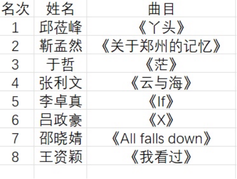 参赛选手一展歌喉,评委们也认真地进行评选,最终评比结果如下: