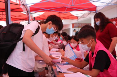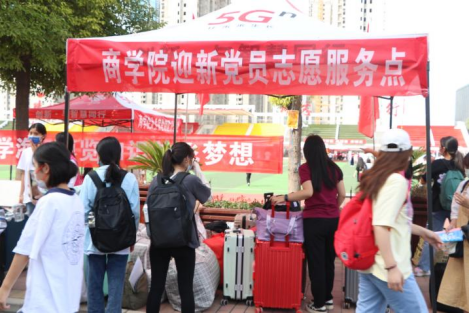 新生报到期间,商学院师生志愿者在学校门口进行“一对一”志愿服务,校园内设置迎新党员志愿服务点,为新生提供行李暂存服务。智能化的疫情防控系统保证了疫情防控工作要求的同时也使入校流程更加简捷。入校后,Beat365中文官方网站师生志愿者帮助新生答疑解惑,向新生进行学院介绍、专业介绍、校区设施环境介绍等,帮助新生搬运行李,收集档案资料,提醒报到注意事项,并细致办理登记手续。学院老师和护理学院、化工学院的志愿者们用实际行动为新生树立了积极奉献、互帮互助的朋辈形象。