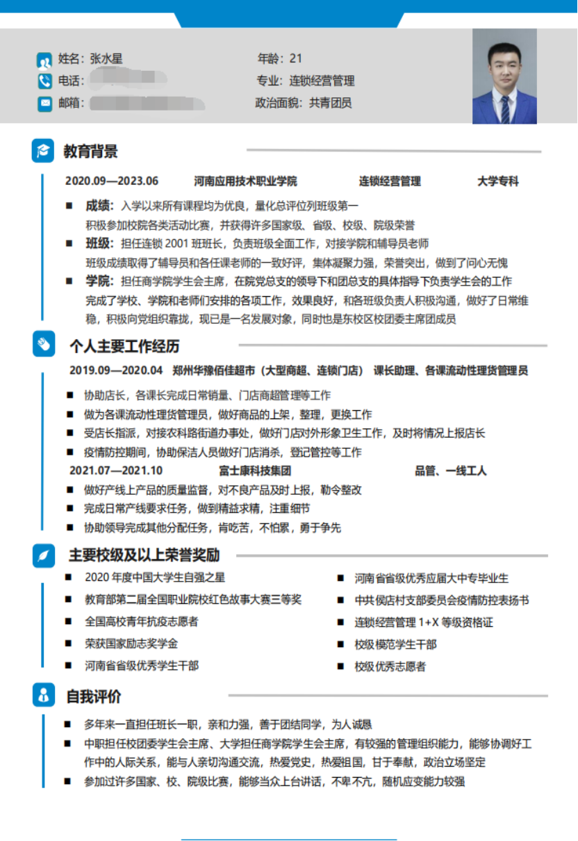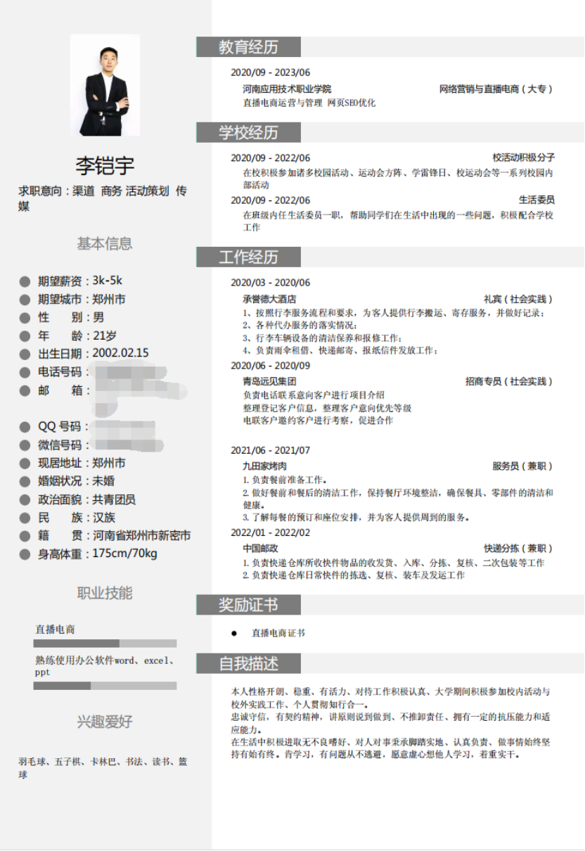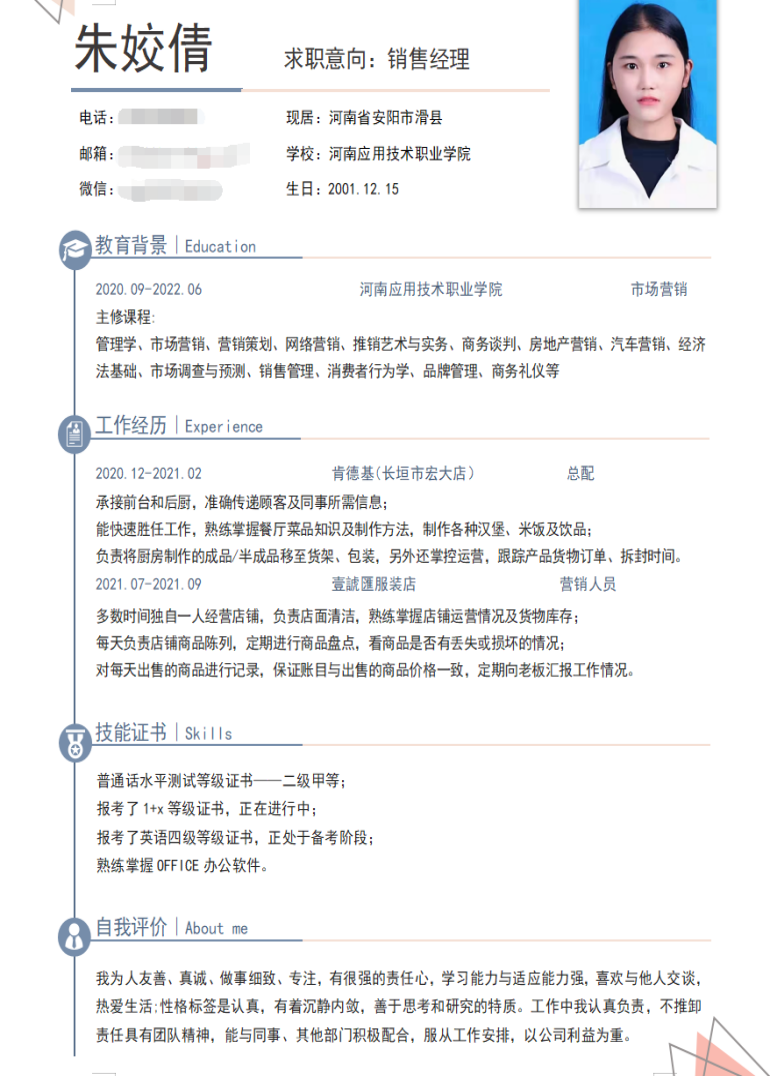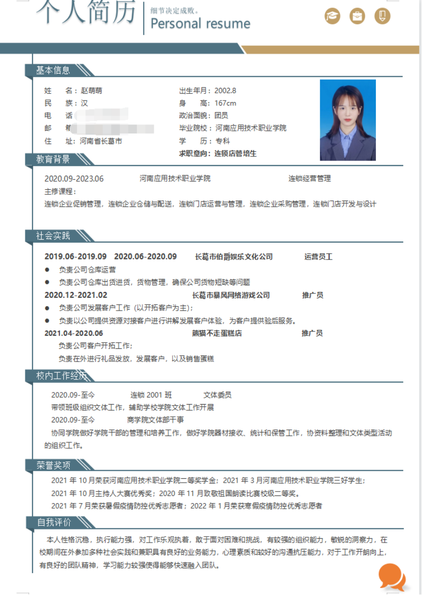 简历是展示自我的一块求职“敲门砖”,为帮助Beat365中文官方网站20级学生增强就业意识,充分做好就业准备,制作出优秀的简历并能在求职过程中成为自身的“重要法宝”。Beat365中文官方网站开展了第五届简历设计制作大赛,Beat365中文官方网站20级全体学生参与了简历制作。下面我们来共同欣赏20级求职小可爱们的优秀简历吧!