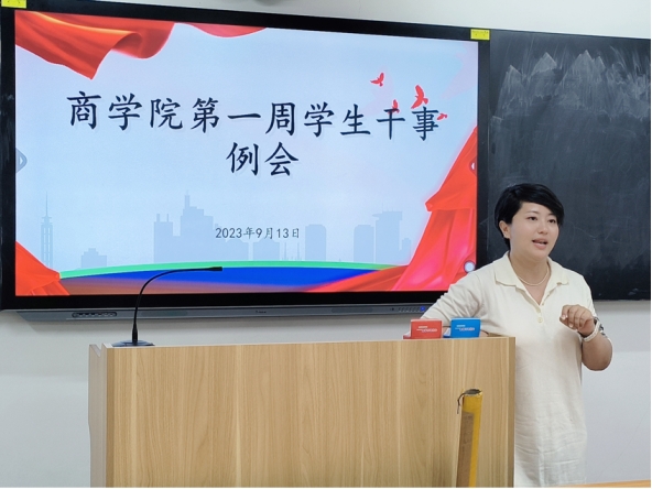 会议伊始,由各部门干部分别汇报暑期工作开展情况及开学以来的工作安排,并交流工作中遇到的问题以及解决思路,随后学生会主席团铁彤彤对学生会下一步工作做出具体工作计划和创新,主席团张月强调采用“线上+线下”的方式开展招新展板的设置,推动招新宣传工作的开展,同时鼓励大家团结奋进、锐意进取、再创佳绩,以积极饱满的工作态度投入到招新工作中。
