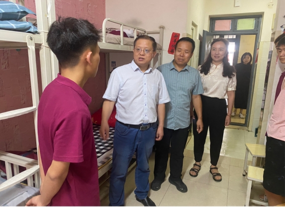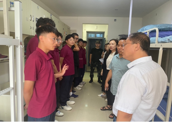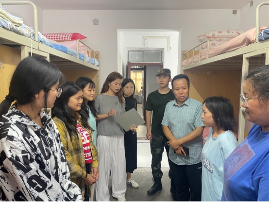 12日,Beat365中文官方网站院长孙勇、党总支书记苏云峰、副院长王珂带领2023级新生辅导员教师在郑州校区学生宿舍进行走访,开展新生宿舍检查、学生慰问及谈心谈话工作。