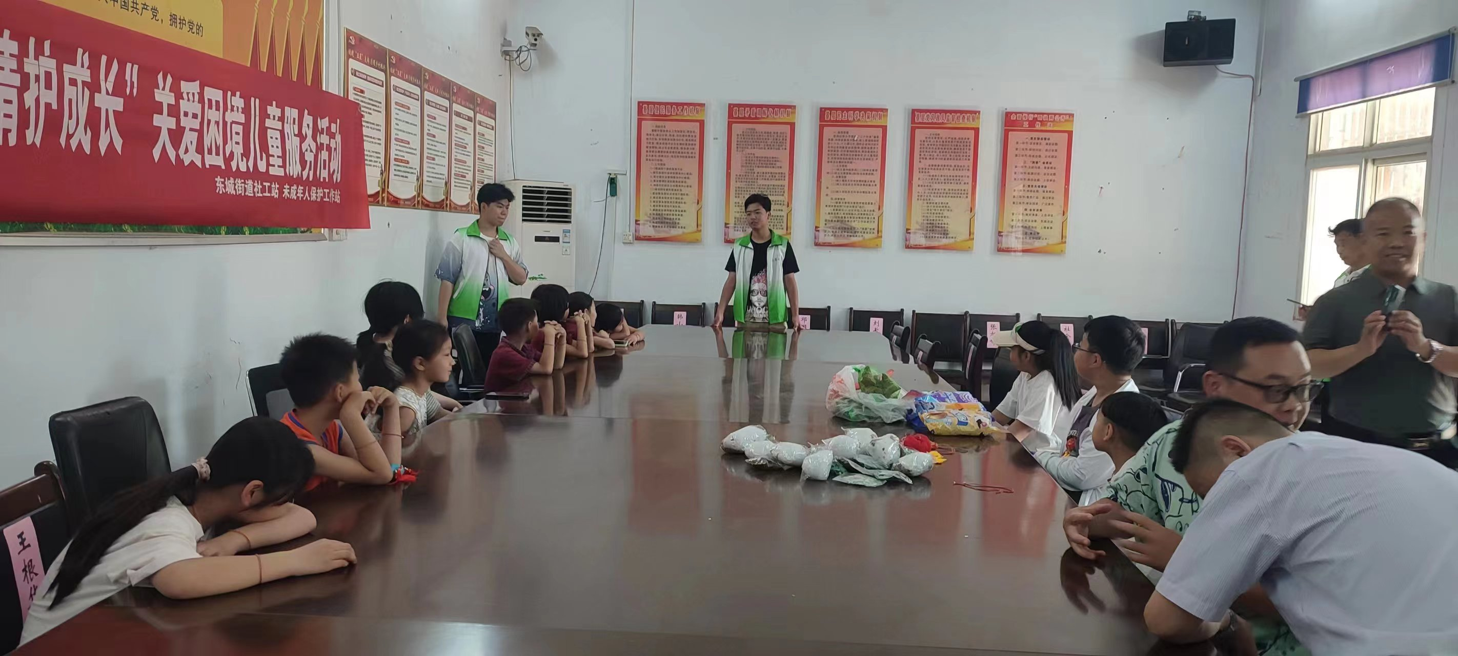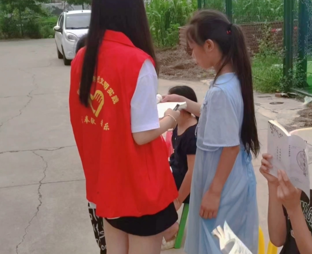 :6月18日至今,参加了平顶山市郏县爱馨社工的暑期实践活动。五月初五端午节在东城街道寨子社区开展志愿者“粽香暖童心 真情护成长”端午节关爱困境儿童送关怀活动。