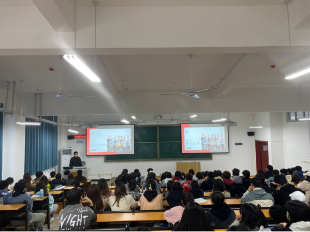 宣讲会在顺丰企业播放的宣传片中拉开序幕,顺丰速运集团人事经理朱宝峰对企业文化、行业发展趋势等方面进行了详细介绍,让学生熟悉企业的同时,也明确将来的发展方向。