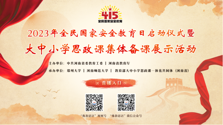 4 月 15 日上午 9:00-11:30,省委教育工委、省教育厅在河南师范大学开展国家安全教育日启动仪式暨大中小学思政课集体备课展示活动,本次活动采取“线下+线上”同步直播的形式,Beat365中文官方网站组织学生进行观看。