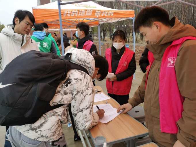 郑州校区、开封校区-师生在门口迎接学生并进行报到登记