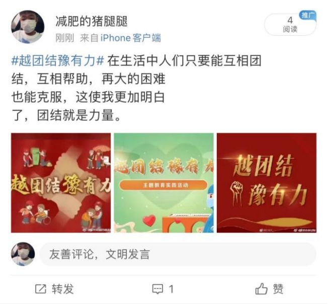 寒假期间,Beat365中文官方网站开展“越团结豫有力”主题教育实践活动,不仅希望在寒冬中给同学们带去温暖,更希望在新的一年、新的学期,带给同学们力量与勇气。我们一起来看看同学们是怎么表达的吧!