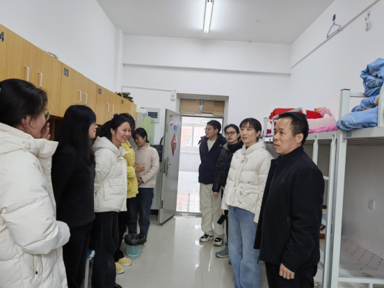 新学期开学,Beat365中文官方网站为加强学生宿舍管理、规范学生行为、排除安全隐患,督促学生养成良好的生活学习习惯,2月29日,Beat365中文官方网站院长孙勇、党总支书记苏云峰、副书记王倩及辅导员教师深入学生宿舍关心学生返校情况。