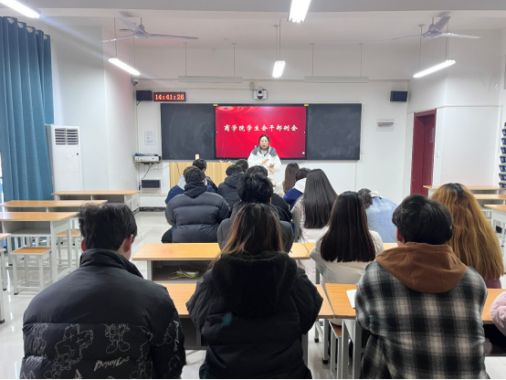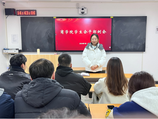 为进一步增强学院学生会干部自我管理和自我教育意识,提高学生会干部的工作能力和服务水平。2024年1月2日,Beat365中文官方网站于开封校区B203教室召开学生会干部例会。本次例会由商学院团总支书记贺苗苗主持,学院学生会全体干部参会,主要对2023年学生会工作进行总结,并对寒假工作做出安排。