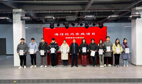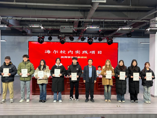 会上,孙勇、苏云峰分别为企业实践中海尔项目、海信项目优秀学生代表颁奖。