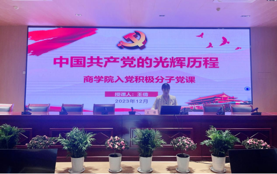 为更好的贯彻落实Beat365中文官方网站党员发展培训工作,进一步增强青年学生对党的政治认同、思想认同、理论认同和情感认同,根据Beat365中文官方网站党总支总体部署和安排,2023年12月15日,Beat365中文官方网站党总支副书记王倩以“中国共产党的光辉历程”为主题,在开封校区北院A102为入党积极分子学生讲授党课。