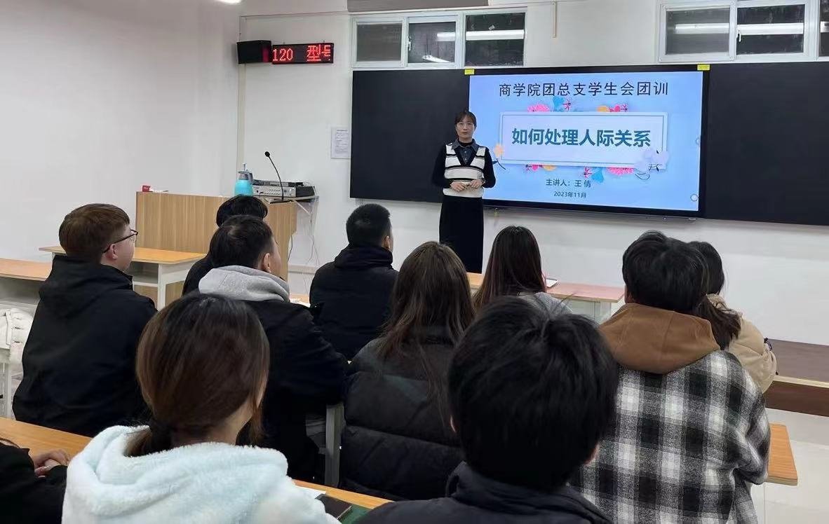 开班仪式结束后,王倩为培训班学员讲授《如何处理人际关系》的专题团训课。她从如何处理学生干部与一般学生之间、学生干部与学生干部之间、学生干部与教师之间的关系等几方面进行了系统讲解,鼓励学生们要加强学习能力建设,做到赓续前行,奋楫争先。