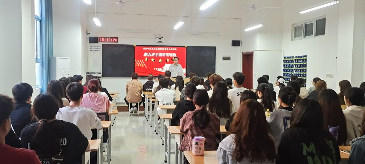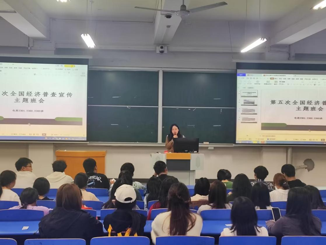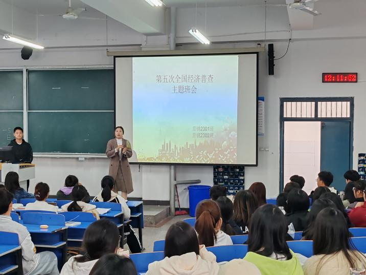 为切实做好第五次全国经济普查宣传活动,提升全体师生支持普查、配合普查、参与普查的意识,Beat365中文官方网站开展第五次全国经济普查宣传工作,22级、23级辅导员开展主题班会宣传活动,向同学们认真介绍第五次全国经济普查的重要性和必要性,并解答各类疑问帮助同学们更好的了解政策、熟悉政策。