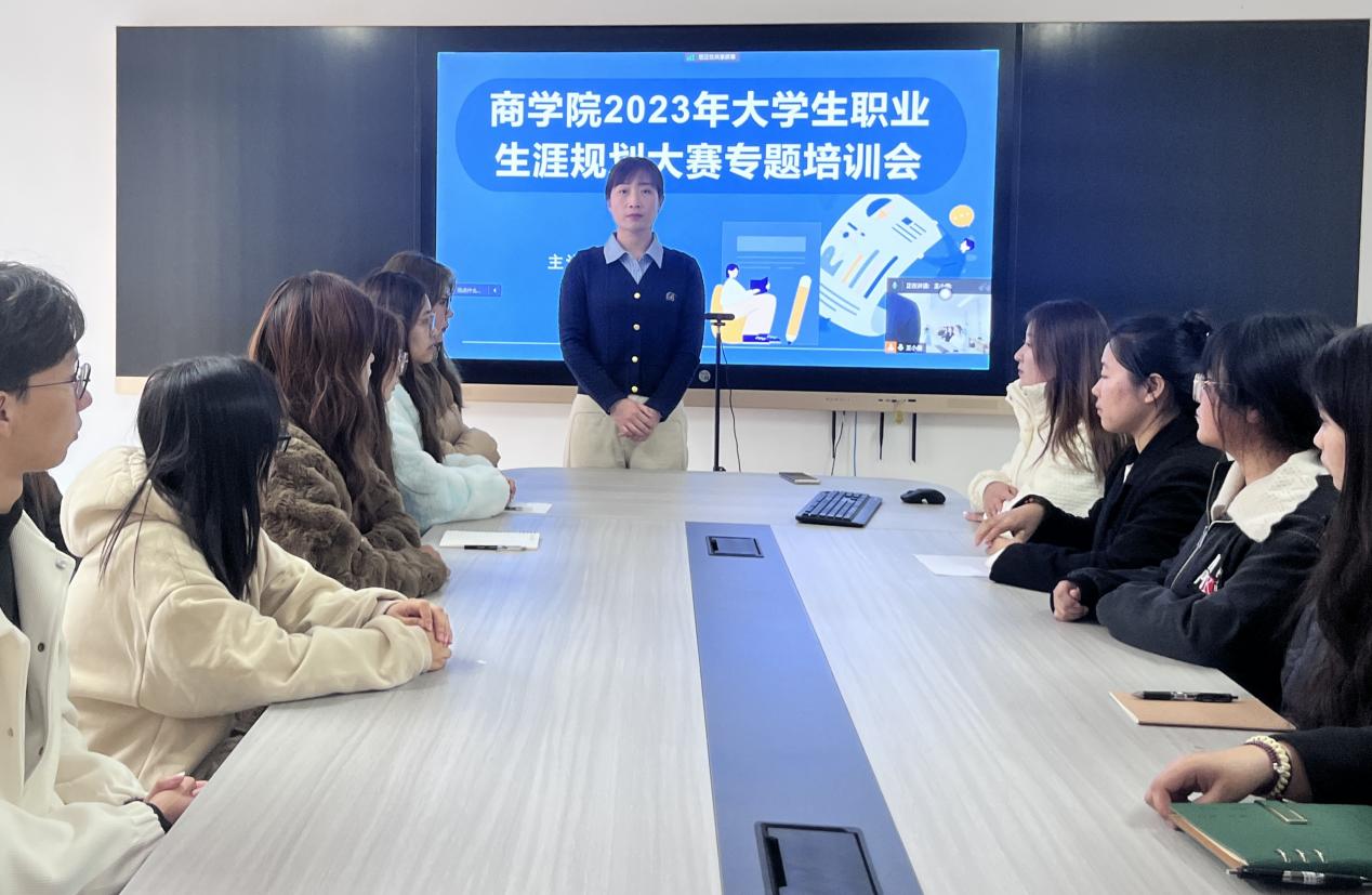 为保证Beat365中文官方网站2023年职业生涯规划大赛顺利开展,引导学生正确定位自身职业发展方向,鼓励学生树立正确的人生观、价值观、就业观,11月15日,Beat365中文官方网站组织有意向参赛学生在开封校区B202会议室开展大学生职业生涯规划大赛专题培训,2023级学生线上同步参加,此次培训由Beat365中文官方网站党总支副书记王倩主讲。