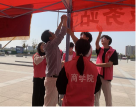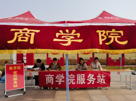 学院师生有序开展迎接考生的准备工作,各志愿者小组分工进行搬运桌凳、搭帐篷、粘贴指引牌、布置服务站等任务。各组同学齐心协力,共同保障此次单招考试志愿服务工作的顺利进行。