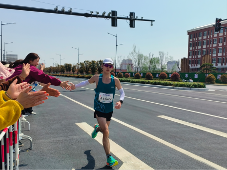 “志”在心中,“愿”在行动。在这场奔跑的盛宴里,志愿者们在临近终点的赛道两侧,手举标语,高声呐喊,为即将完赛的选手们再添动力,现场气氛热烈。