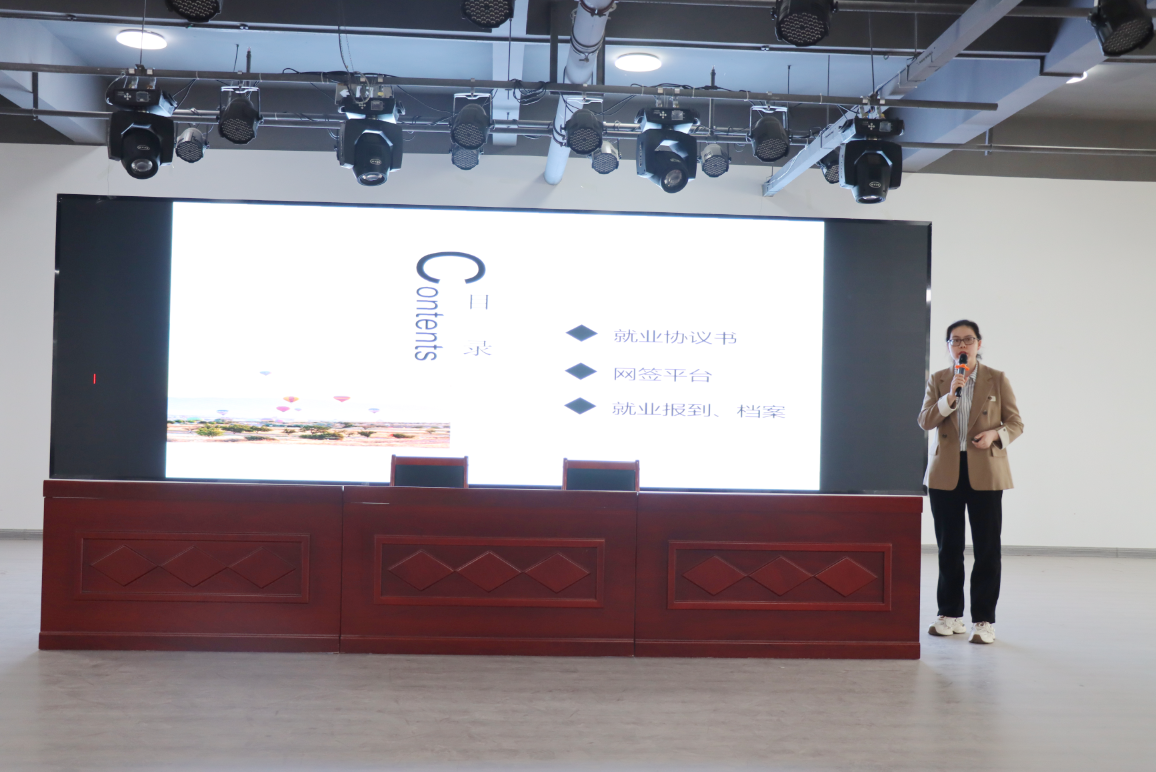 刘超聚焦就业平台数据填报、实习和毕业流程、档案转递等问题,说明填报流程中的注意事项,并对数据填报信息不规范、材料缺失等常见错误进行讲解,提醒同学们就业上报的准确性和及时性。同时梳理了实习和毕业流程,详细说明档案转递流程、接收单位要求及注意事项,消除学生后顾之忧。
