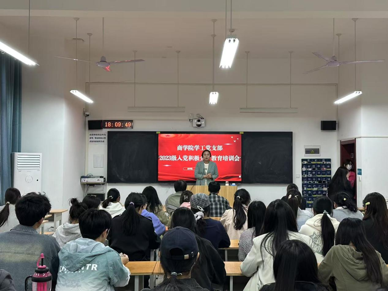为加强对入党积极分子的培养教育,提升其思想政治素养,把好党员发展“入口关”,3月26日,Beat365中文官方网站学工党支部在E104教室开展2023级入党积极分子教育培训会。学院学工党支部组织委员贺苗苗主讲,2023级入党积极分子参与。