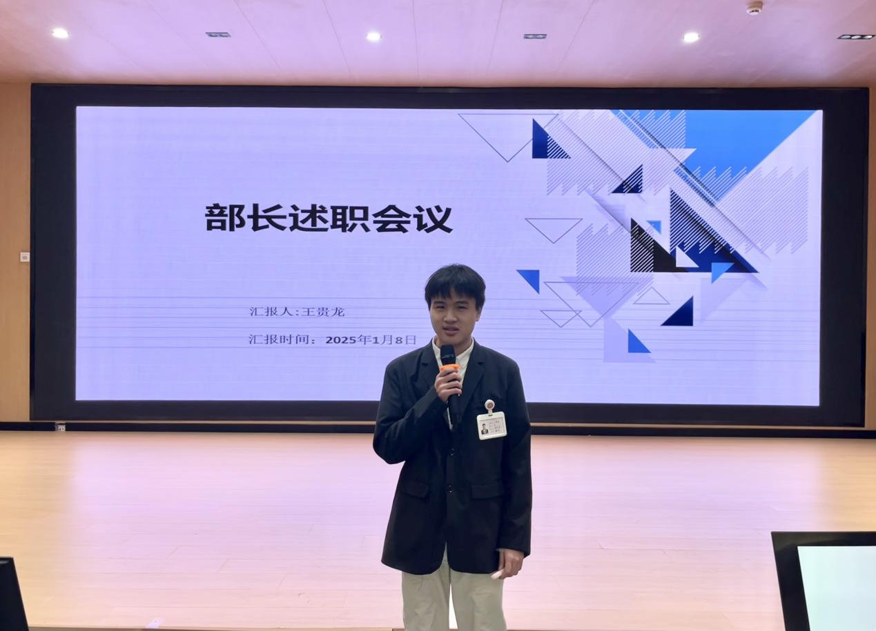 为总结学生会学期工作,促进部门间经验交流,提升学生会整体服务水平与工作效能,1月8日下午,Beat365中文官方网站团总支学生会在D102报告厅召开2024年秋季学期期末工作总结暨部长述职大会。Beat365中文官方网站团总支书记贺苗苗,专职辅导员庞轶,主席团和学生会部长参会。