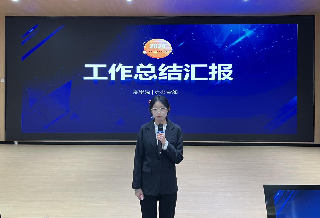 首先,学生会主席团依次做工作报告。主席团以多样的风格详细讲述了学生会本学期的重要活动及主要成绩,在个人方面也讲述了收获与不足。他们表示,下学期将重点侧重在部长素质能力提升,争取取得思想上和能力上的长足进步,让部长们在实习就业中取得优势。