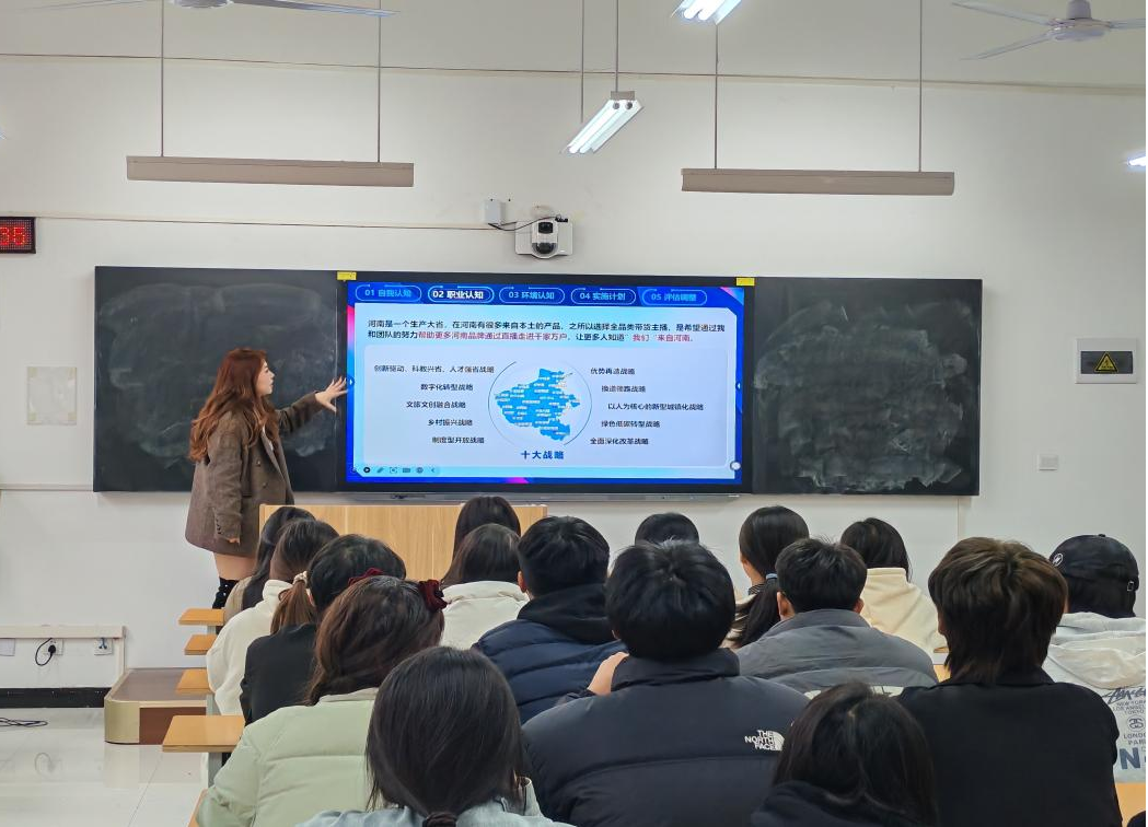 王倩对大赛文件进行了全面解读。她详细讲解了成长赛道和就业赛道的比赛方案,包括大赛的主题内涵、参赛材料要求、比赛环节、评审标准以及赛程安排等重要信息。通过解读,同学们对大赛有了清晰的认识,明确了在准备过程中需要着重关注的要点,为后续的参赛准备工作奠定了坚实的基础。