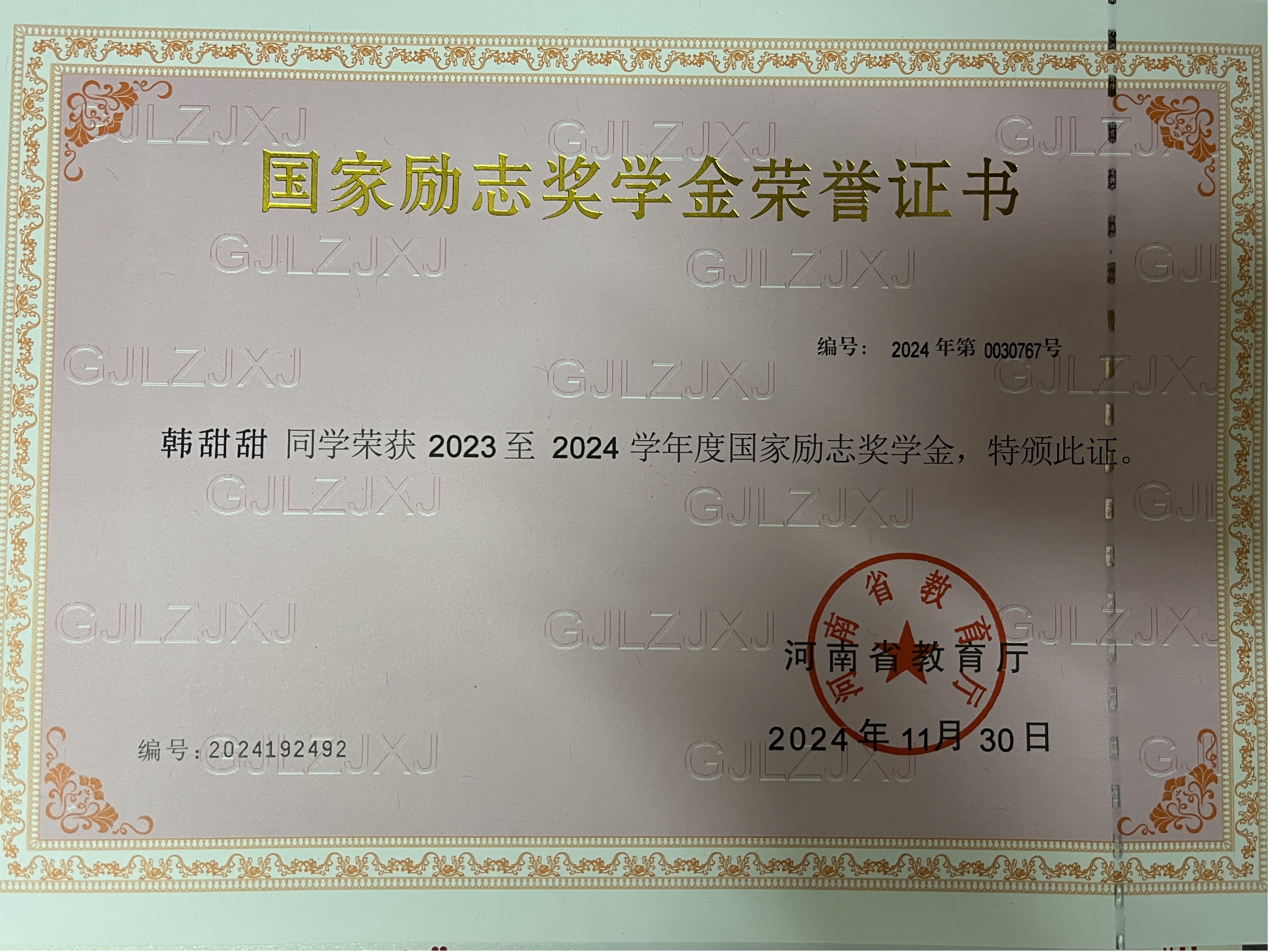 在学习中,韩甜甜坚持 “课前预习、课中深耕、课后答疑” 的严谨态度,带着疑问听课、重点难点必究,以闭环学习法夯实专业基础。她始终相信 “以赛促学” 的成长路径,主动投身各级各类技能竞赛,将课堂知识转化为实践能力。在全国跨境电商创新创业能力大赛中,她深耕方案设计与模拟运营,斩获团体与个人二等奖;在河南省跨境电子商务赛项中,凭借精准解题思路与优化操作流程,勇夺一等奖;还先后拿下河南省大学生创新大赛三等奖及多项校级竞赛荣誉,形成 “学习 - 实践 - 改进” 的良性循环。如今,她的班级与专业成绩、量化排名均稳定第一,用实力印证了勤学善思的优良学风。