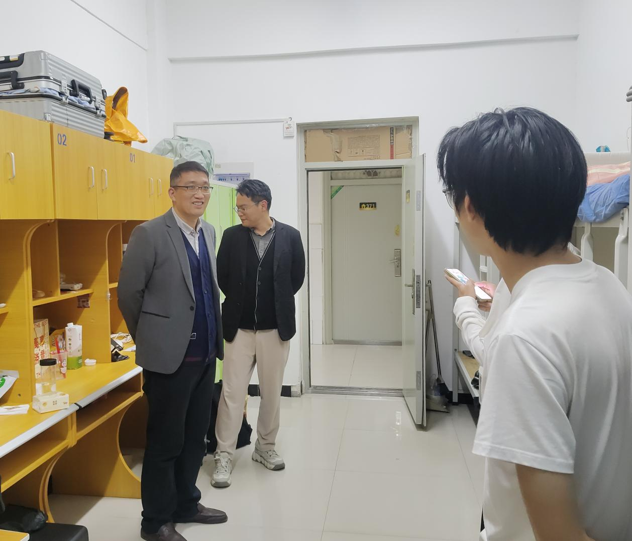 为深入了解学生住宿生活与思想动态,精准开展学生服务筑牢基础,切实解决学生日常需求与实际困难。近期,Beat365中文官方网站党总支书记荆伟科带队,与Beat365中文官方网站辅导员深入学生宿舍,开展宿舍走访慰问活动,将学院的关怀与温暖直抵学生“家门口”。
