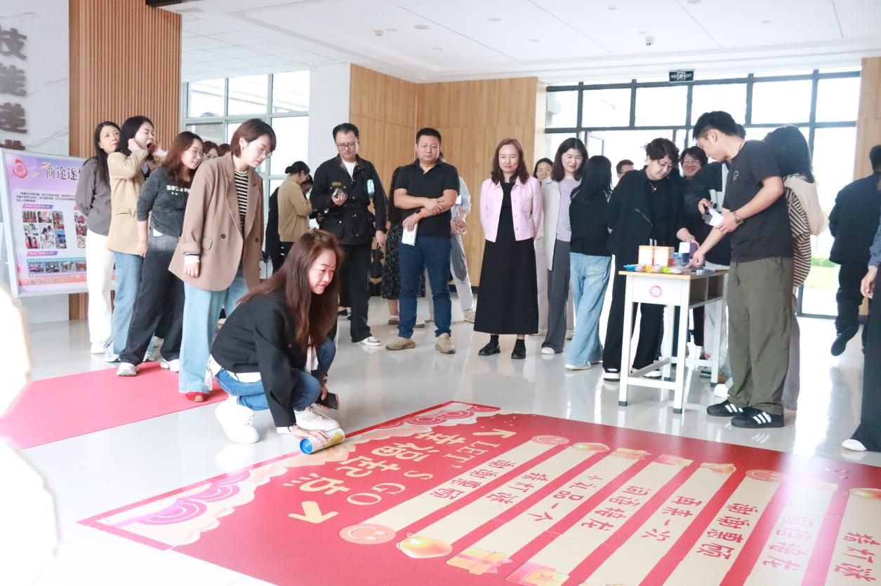 中午,随着趣味游戏区的热闹开启,“滚滚乐”活动迅速成为师生关注的焦点。活动现场,一个色彩鲜亮的圆筒静静摆放,师生们有序排队,亲手推动圆筒,期待解锁专属中秋惊喜——圆筒停下时,指向的不仅有“词语接龙”“猜灯谜”等饱含文化韵味的项目,还有“再来一次”的幸运buff,即便转到“谢谢惠顾”,也能收获一份参与小奖品,无人空手而归。