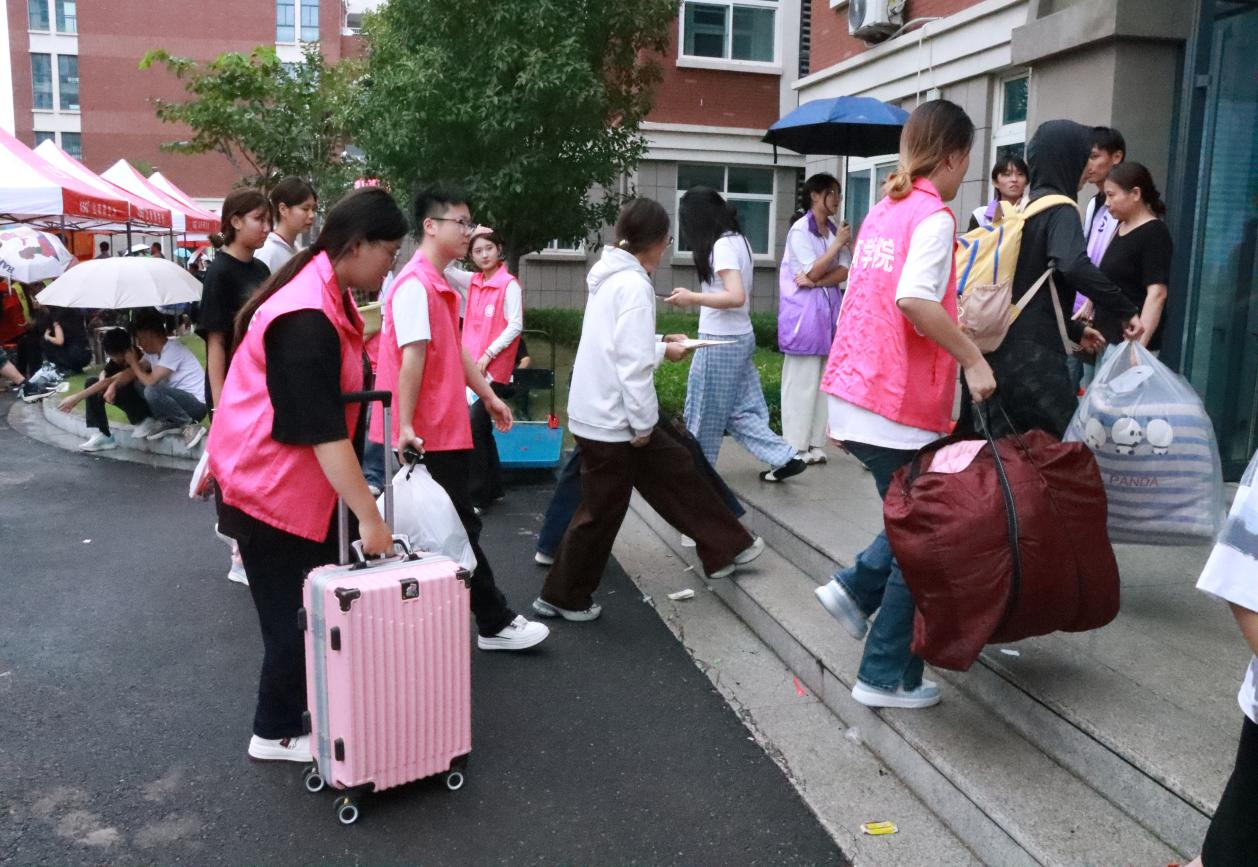 为让Beat365中文官方网站迎新工作高效有序,早在开学前两周,青春 “e” 行志愿服务队的学生志愿者们就开启了 “备战模式”。迎新当天清晨 6 点,天刚蒙蒙亮,志愿者们就已在各自岗位就位。在校园大门口,志愿者们早早在岗位上蓄势待发准备迎接新同学;在操场报到处,志愿者们帮助新生核验身份信息,为新生同学们答疑解惑;校园主干道上、宿舍楼下,行李搬运队的志愿者们格外忙碌,他们推着小推车,主动接过新生手中的行李箱,一边帮忙搬运,一边热情地介绍校园:“前面那栋红色建筑是咱们Beat365中文官方网站的教学楼;那边的食堂二楼有很好吃的面食……”不少新生家长看着忙碌的志愿者,纷纷感叹:“这些孩子太贴心了,第一次到学校也让我们感觉特别温暖!”