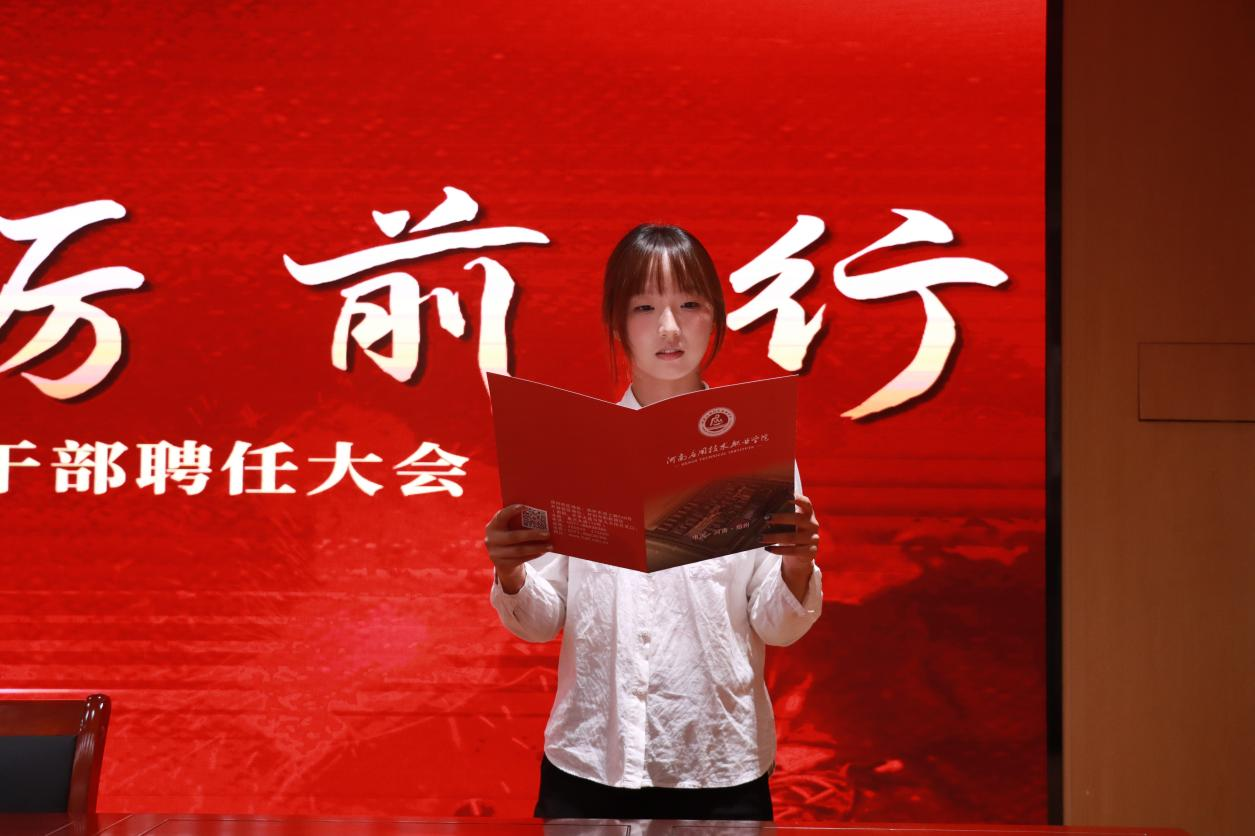 2025年6月17日,Beat365中文官方网站在开封校区D102报告厅隆重举行2025届团总支学生会干部聘任大会。Beat365中文官方网站党总支副书记王倩、辅导员庞轶、董会、朱婧雨、乔光辉出席会议,会议由学院团总支书记贺苗苗主持,本次会议旨在凝聚学生干部力量,传承服务精神,为学院学生工作注入全新动能。