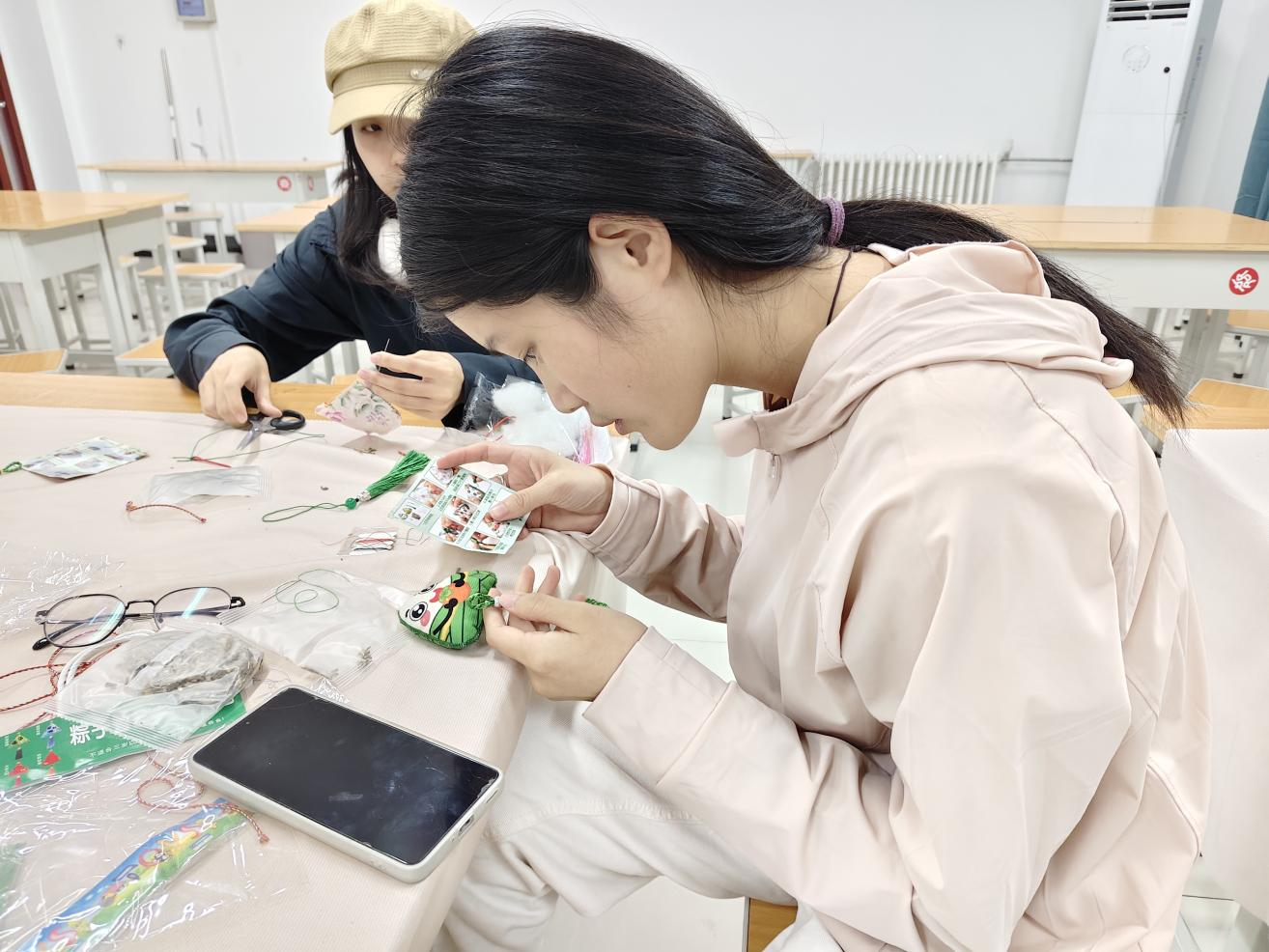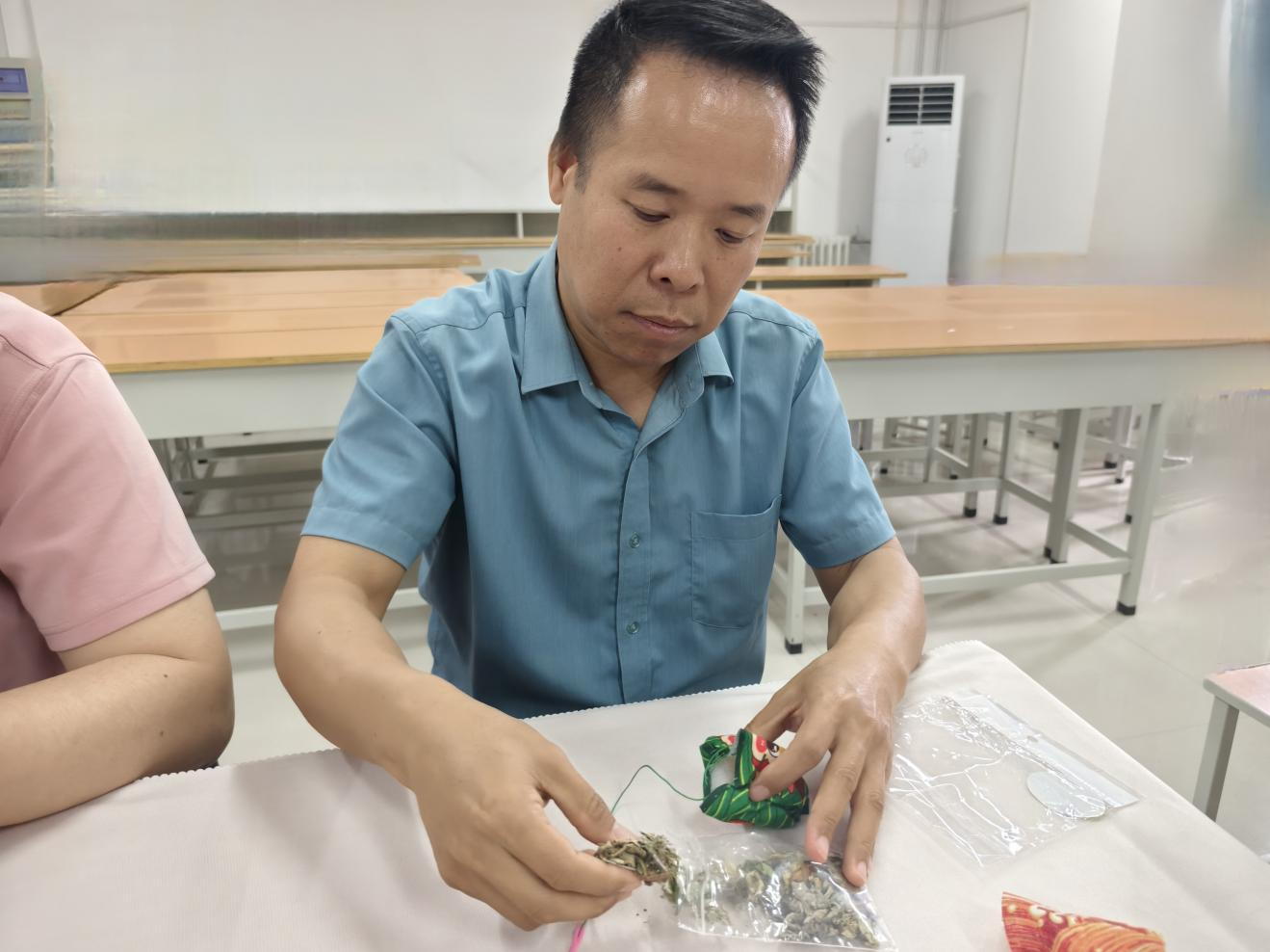端午节的传统习俗之一是制作香囊和佩戴五彩绳。大家挑选自己喜爱的颜色,无论是棉线还是尼龙线,在志愿者的悉心指导下,利用各种工具,精心编织出五彩缤纷的五彩绳,将“消灾弥难、平安长寿”的美好愿望编织其中。在制作香囊的过程中,同学们剪裁、缝制、填充香料,每一个香囊都散发出药草的香气,装饰精美,陆续完成,承载着“辟邪驱瘟”的传统祈愿。现场洋溢着欢乐的气氛,笑声和欢呼声不断,同学们在动手操作中深刻体验到了端午节民俗的独特魅力。